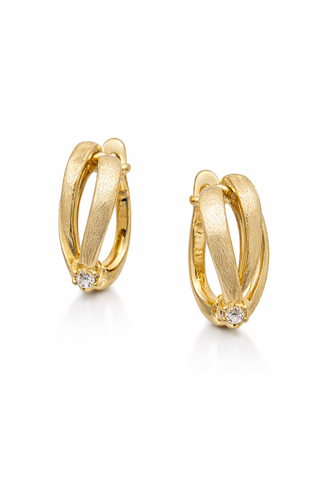 Σκουλαρίκια Ασημένια Επιχρυσωμένα 925 ματ με λεπτομέρεια από λευκή πέτρα ζιργκόν.d