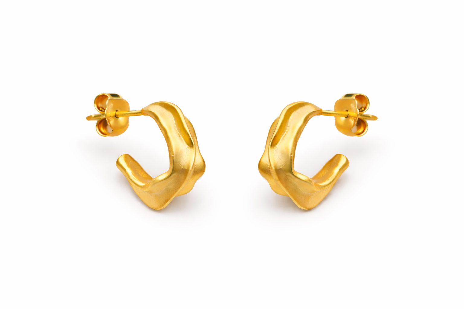 Σκουλαρίκια Κρίκοι Ασημένια 925 Επιχρυσωμένα Ματ Με Λευκές Πέτρες Ζιργκόν KAL-25119Y