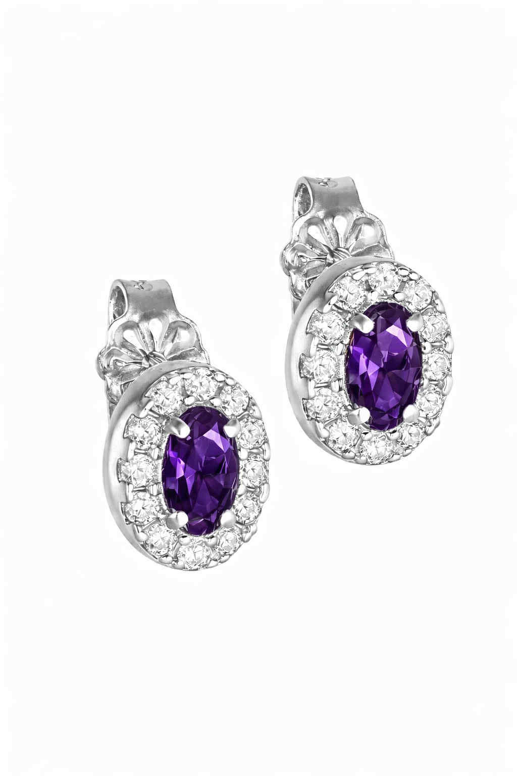 Σκουλαρίκια Λευκόχρυσα Κ14 Οβάλ Με Γαλάζια Πέτρα Ζιργκόν στο κέντρο και λευκές περιμετρικά