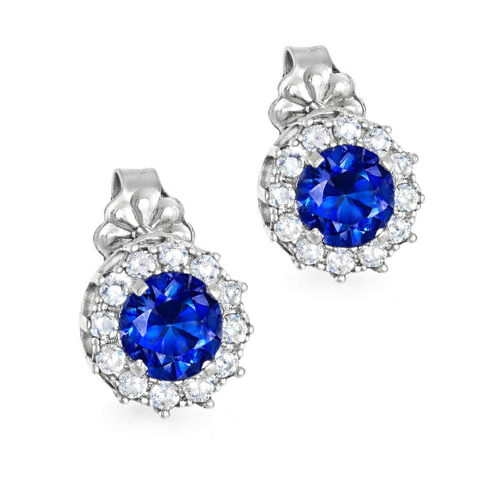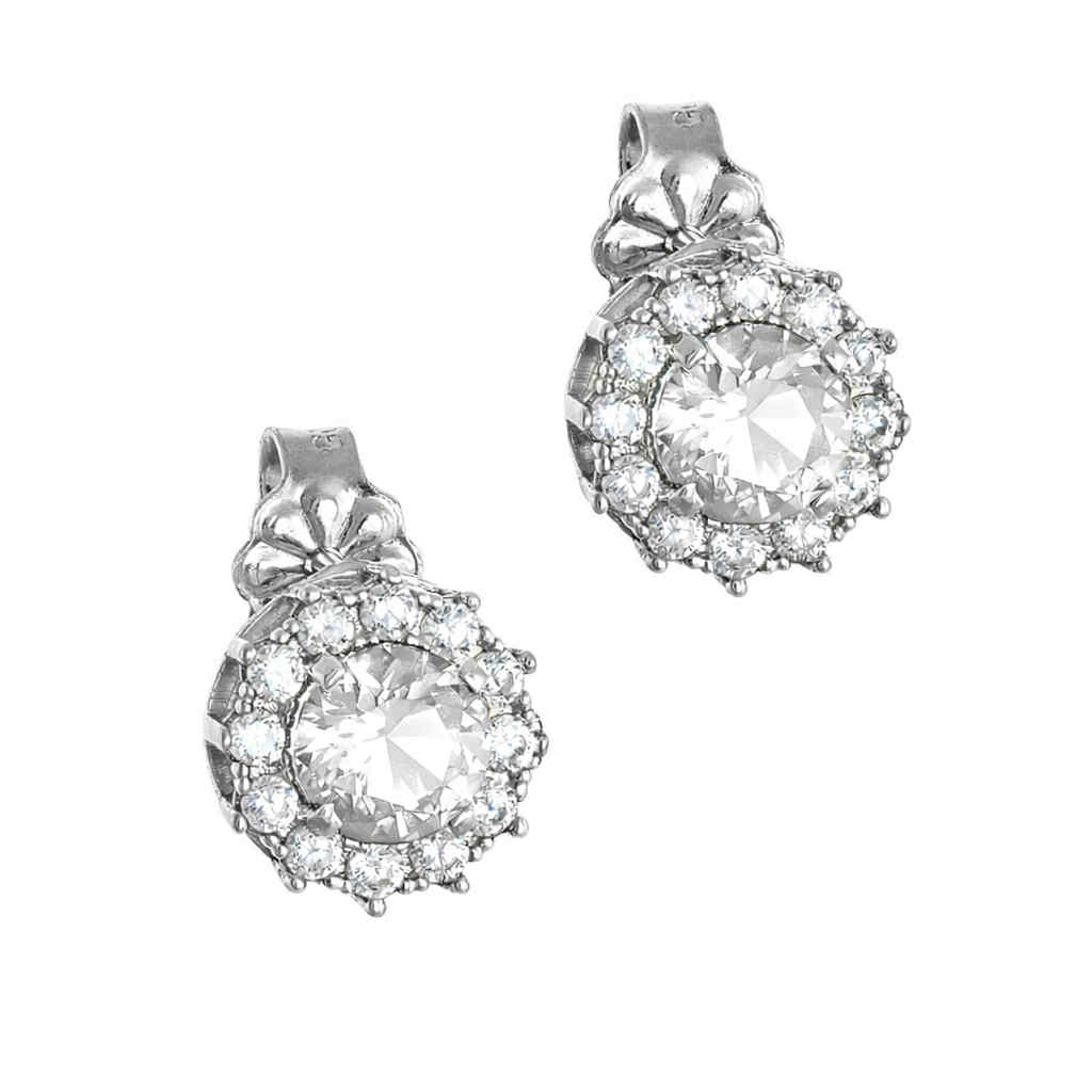Σκουλαρίκια λευκόχρυσα Κ14 ροζέτα με στρόγγυλη λευκή πέτρα στο Κέντρο και Λευκές Περιμετρικά