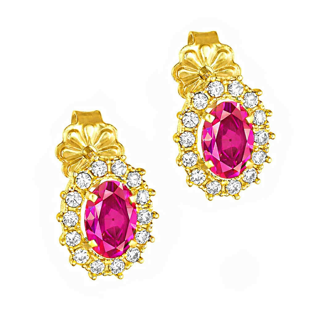 Σκουλαρίκια Λευκόχρυσα Κ14 Ροζέτα Οβάλ Με Λευκή Πέτρα ζιργκόν στο Κέντρο και Λευκές περιμετρικά