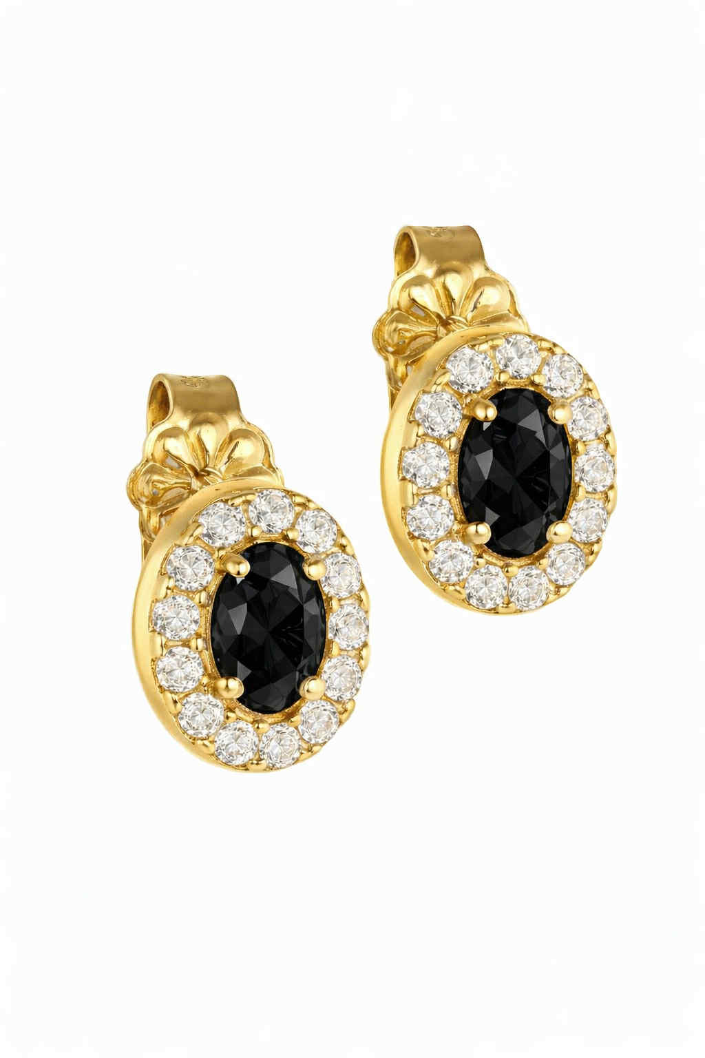 Σκουλαρίκια Χρυσά Κ14 Οβαλ Με Λευκή Πέτρα Στο Κέντρο & Λευκές Περιμετρικά