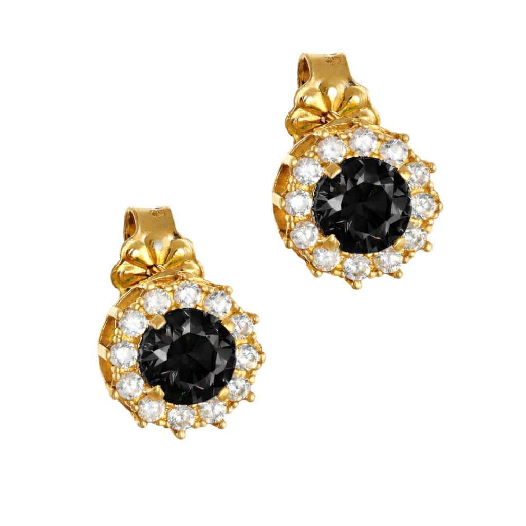 Σκουλαρίκια χρυσά Κ14 ροζέτα με στρόγγυλη κόκκινη πέτρα στο Κέντρο και Λευκές Περιμετρικά