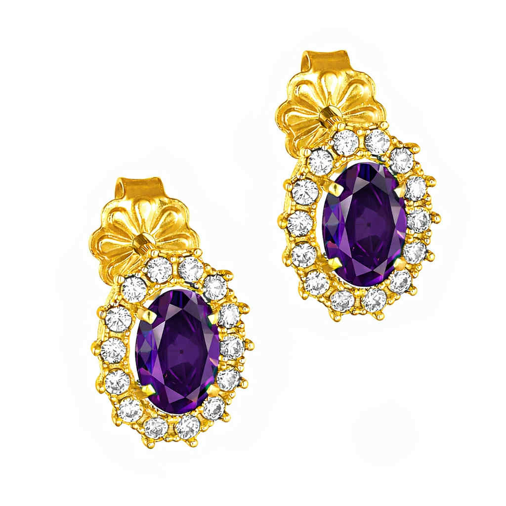 Σκουλαρίκια Χρυσά Κ14 Ροζέτα Οβάλ Με Μωβ Πέτρα Ζιργκόν στο Κέντρο και Λευκές περιμετρικά MSS-22617Y