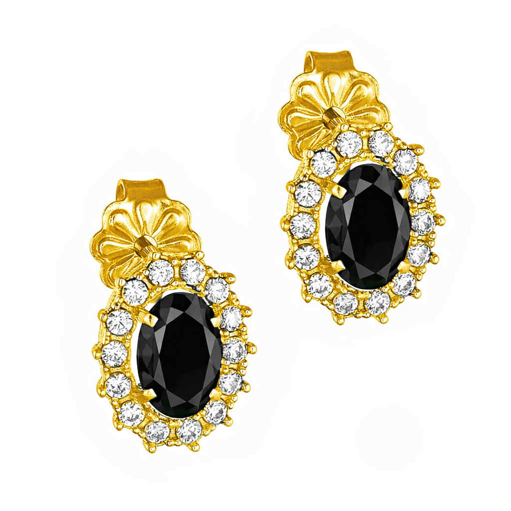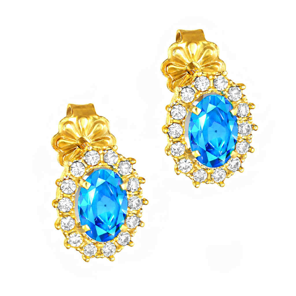 Σκουλαρίκια Χρυσά Κ14 Ροζέτα Οβάλ Με Μωβ Πέτρα ζιργκόν στο Κέντρο και Λευκές περιμετρικά