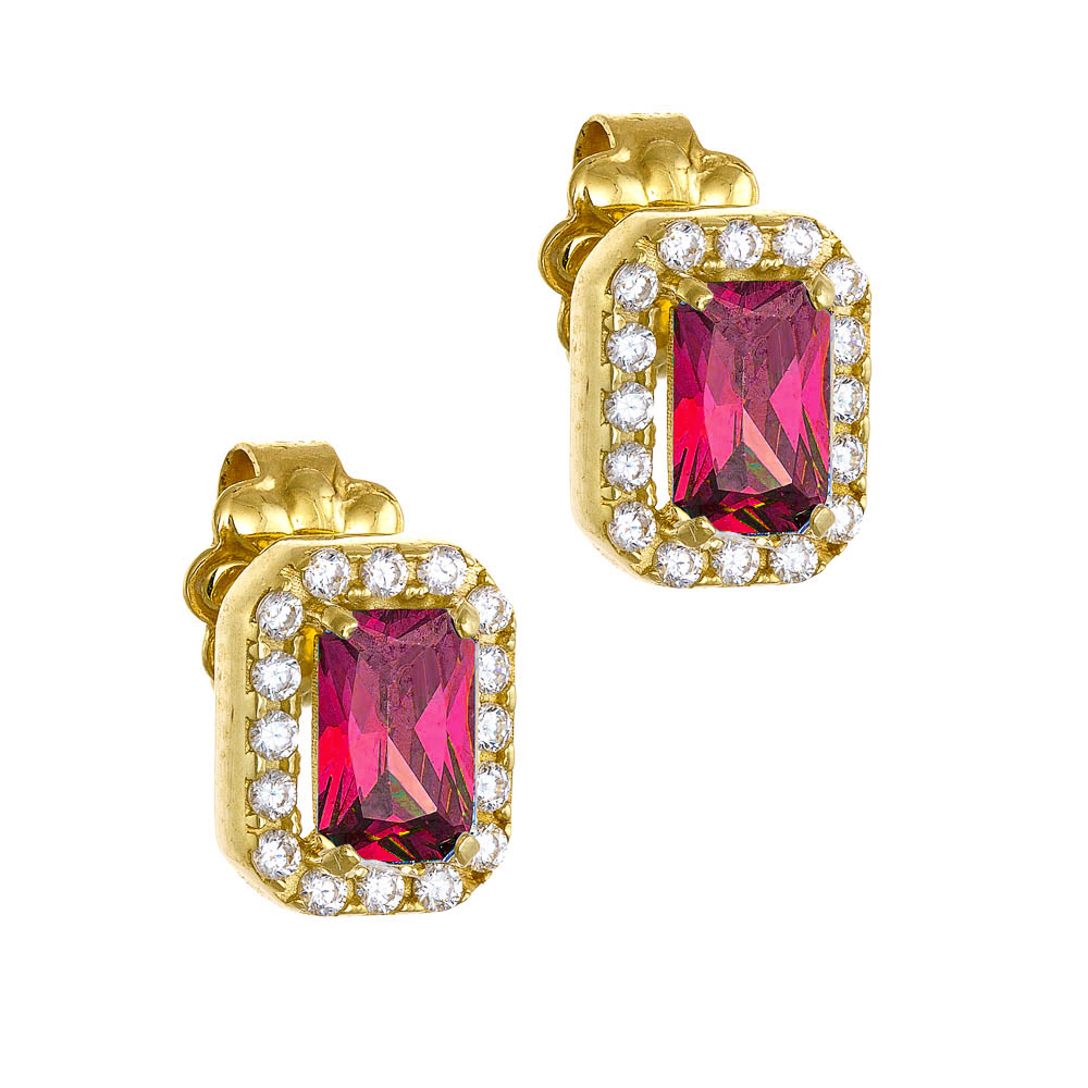 Σκουλαρίκια Rosegold Κ14 Με Ροζ Πέτρα Ζιργκόν Σε Κοπή Baquette & Λευκές Στρόγγυλες Περιμετρικά MSS-22883R