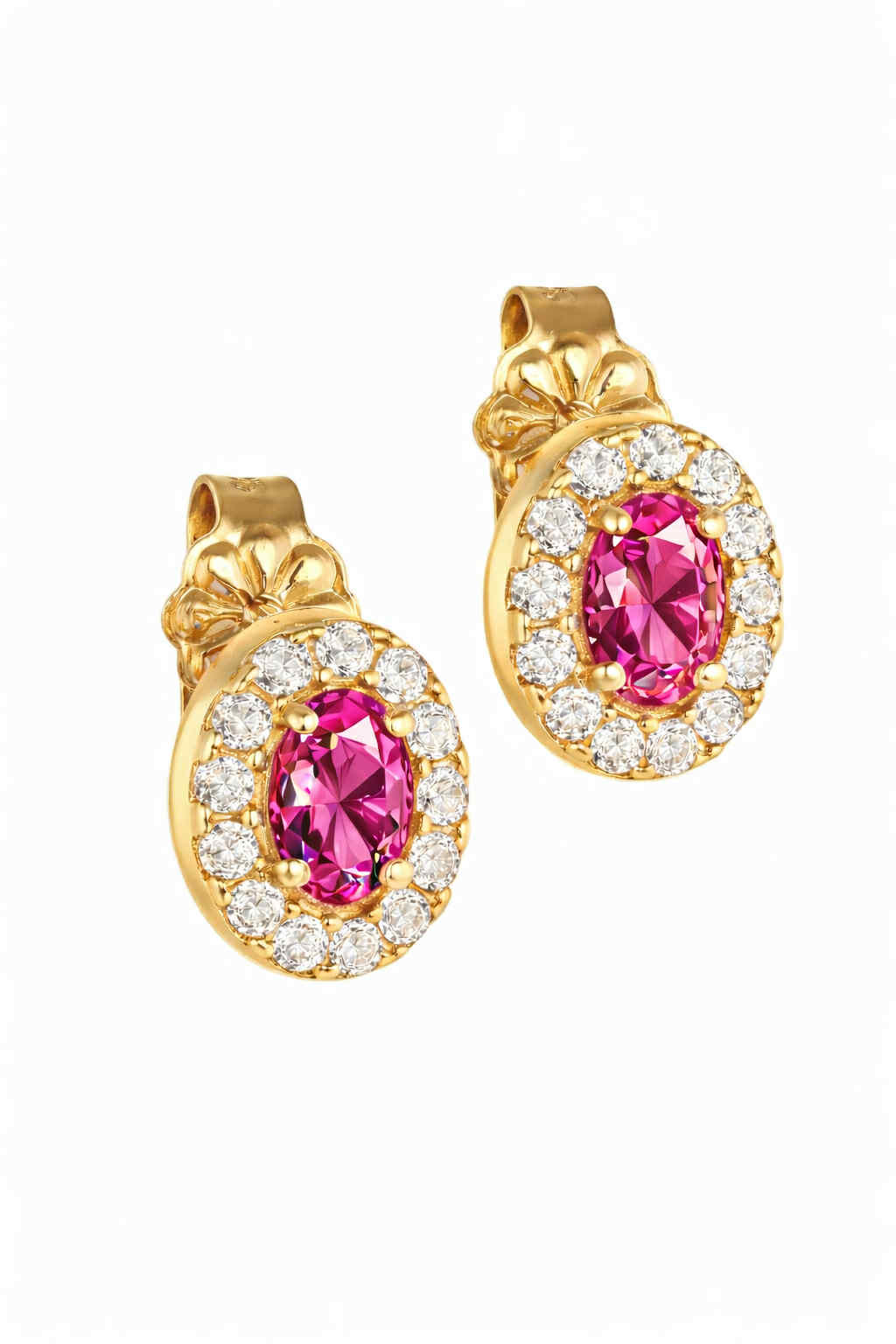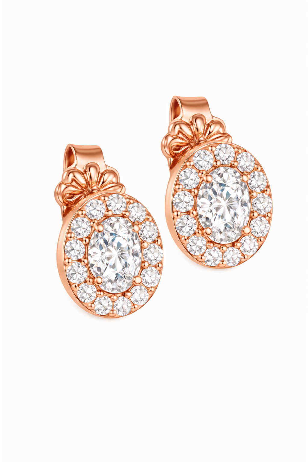 Σκουλαρίκια Rosegold Κ14 Οβάλ Με Λευκή Πέτρα Στο Κέντρο & Λευκές Περιμετρικά
