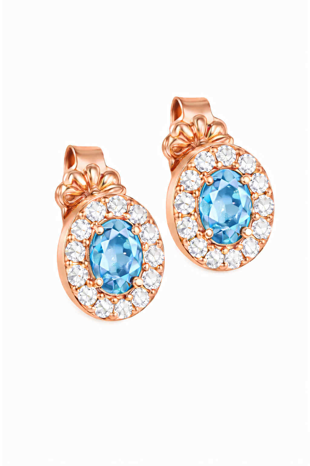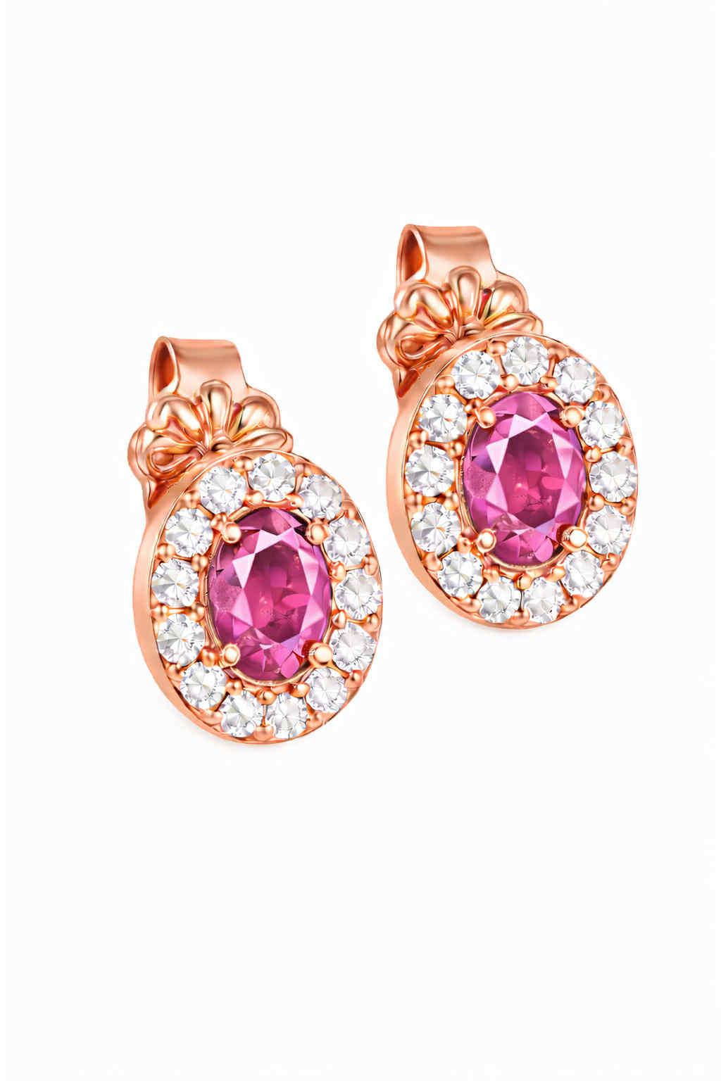 Σκουλαρίκια Rosegold Κ14 Οβάλ Με Ροζ Πέτρα Στο Κέντρο & Λευκές Περιμετρικά