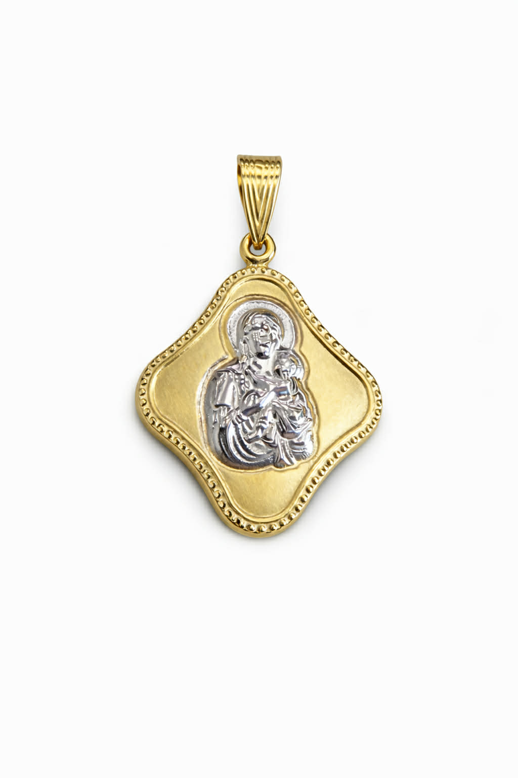 Φυλαχτό χρυσό Κ14 με λευκόχρυση την Παναγία